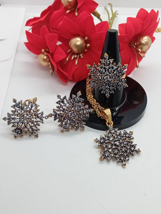 Snow Flake ❄️ |Premium Diamond cut Zircon set, 22 k gold plated