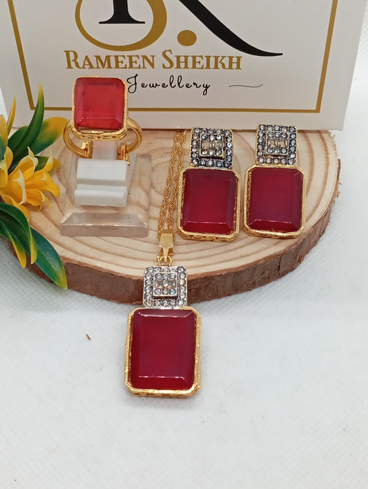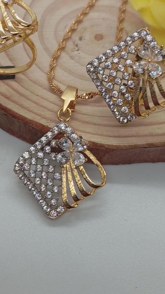 Lavish | Premium Diamond Cut Zircon Locket Set |22K Gold Plated| RS-793
