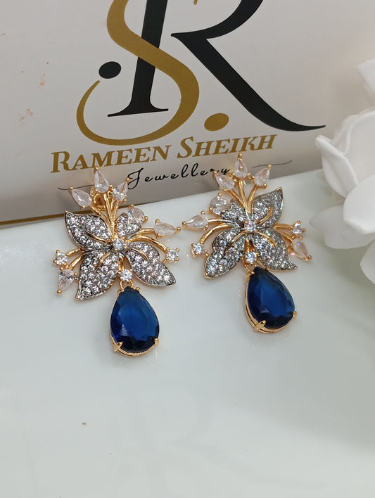 Premium Designer Judao Zircon Earrings | with Stones and 22k Gold Polish | 6 Colors | RE-1183