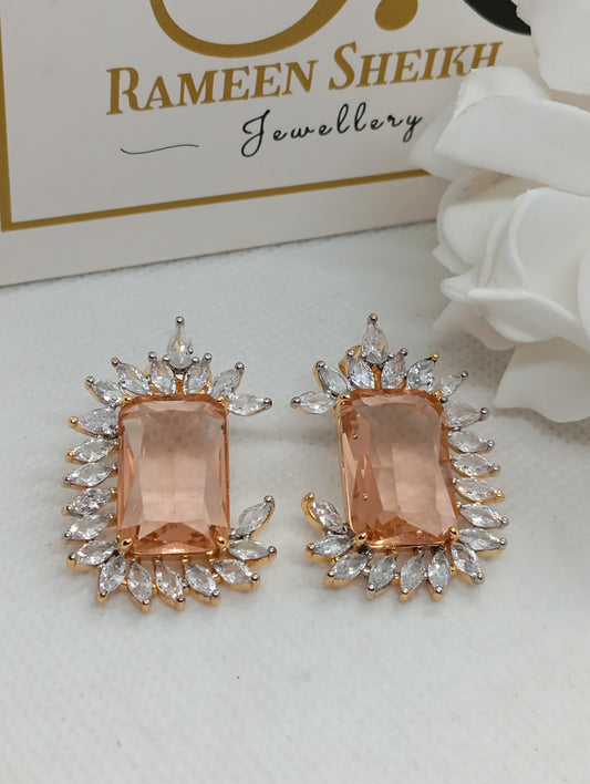 Premium Diamond Cut Zircon Studs 18 K Gold Polish Hand Made | RE-8227