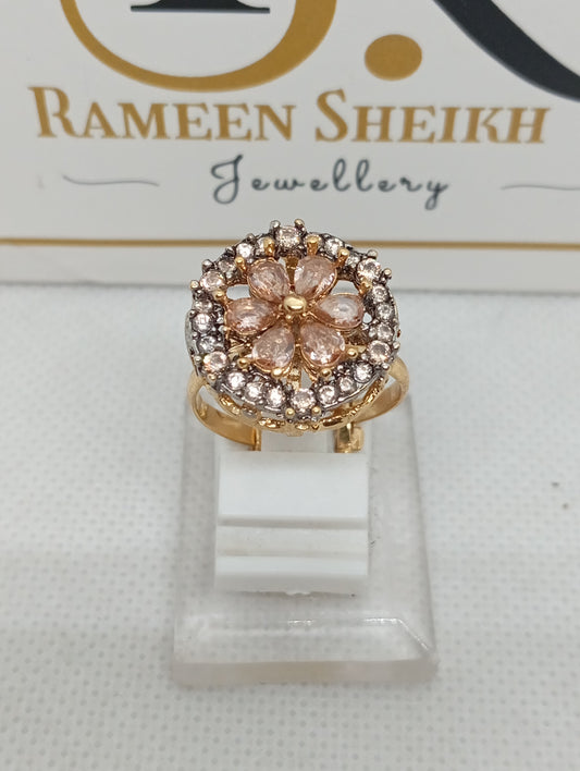 Gold plated Ring with Diamond cut Zircons| 22k gold plated | RR-1022