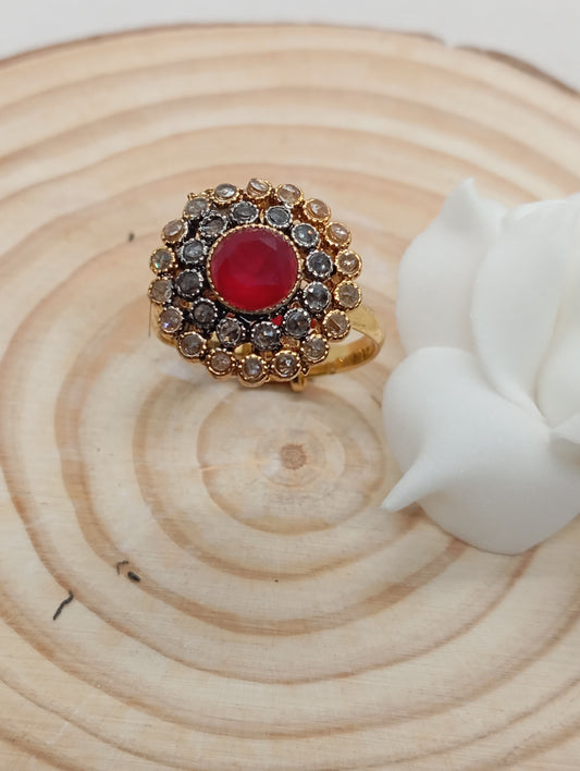 Stone & Zircons embedded adjustable ring | 7 colors | 22 k gold plated hand crafted | RR-8749