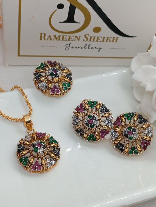 Turkish | 8 Colors | Diamond cut Zircon judao Locket Set | 22K Gold Plated (3 Yrs. Warranty) | MS-8791