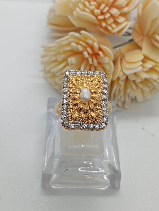 Premium Gold plated ring💎with stones,adjustable ring , 22 k gold polish hand crafted | TM-898