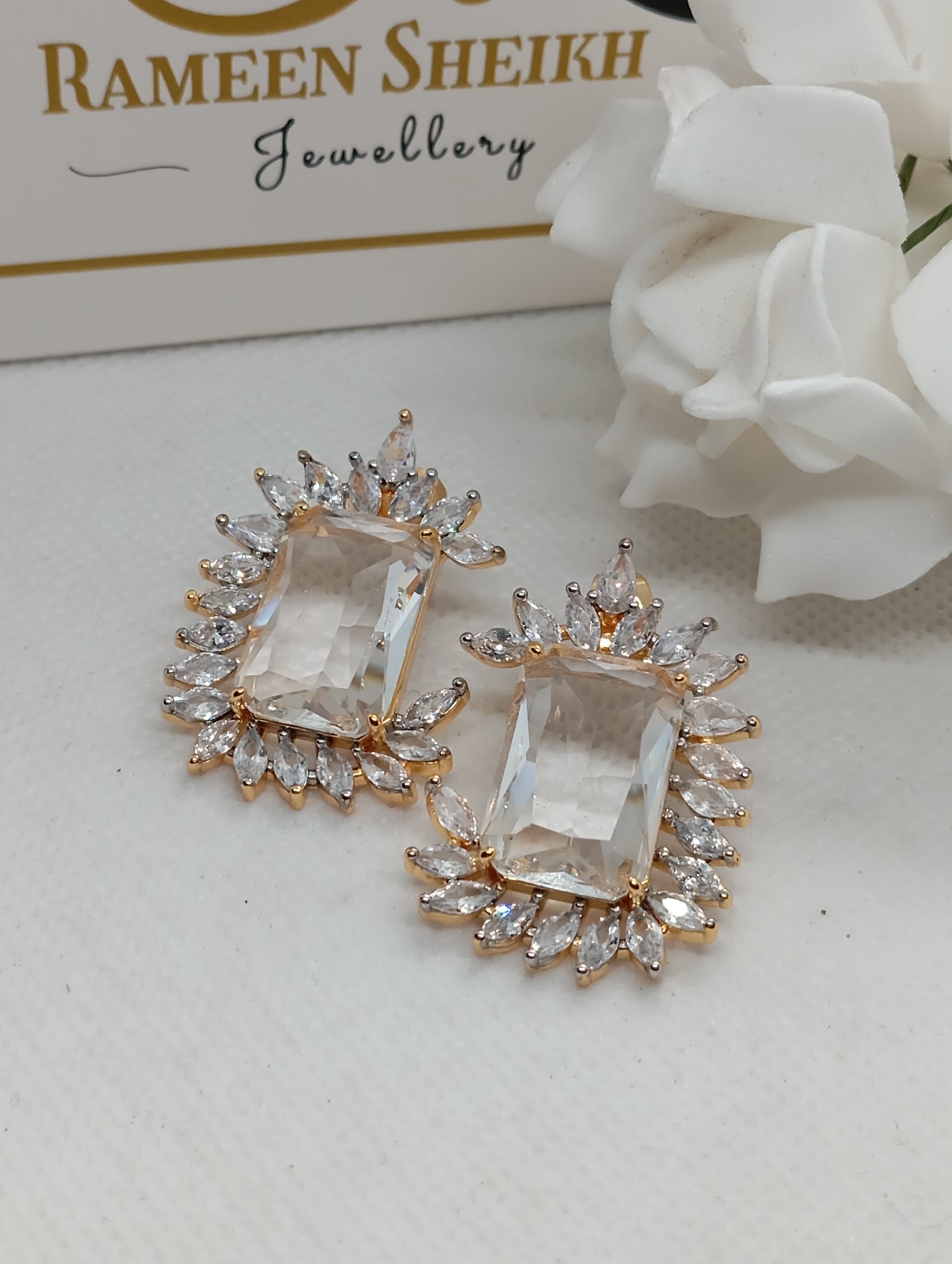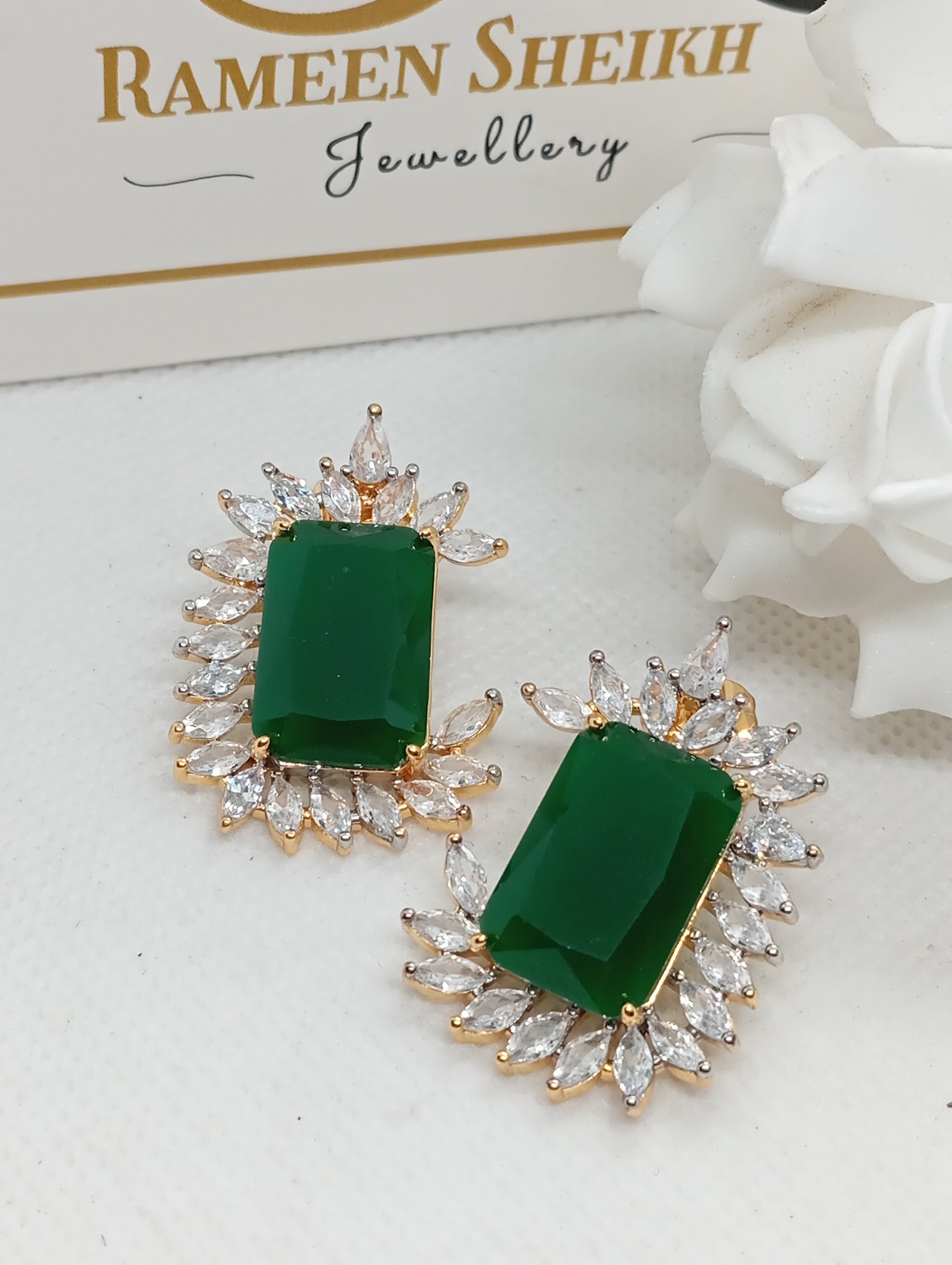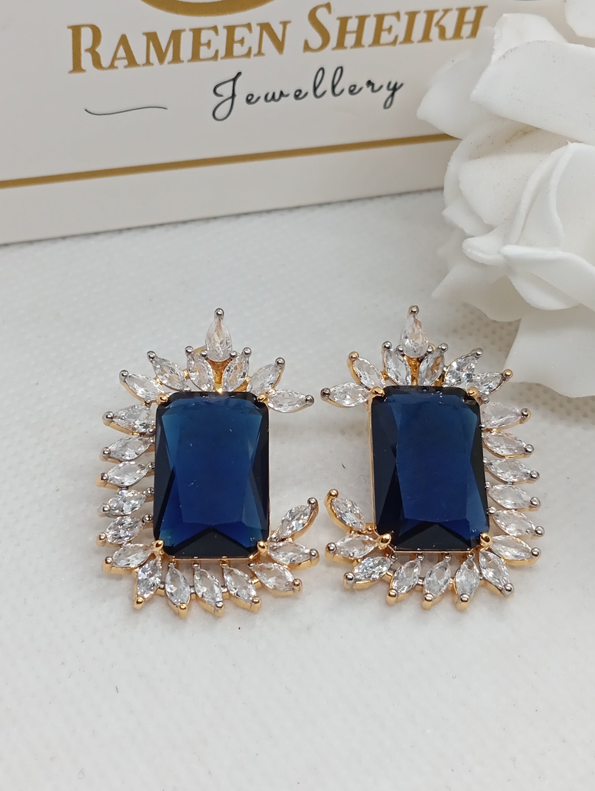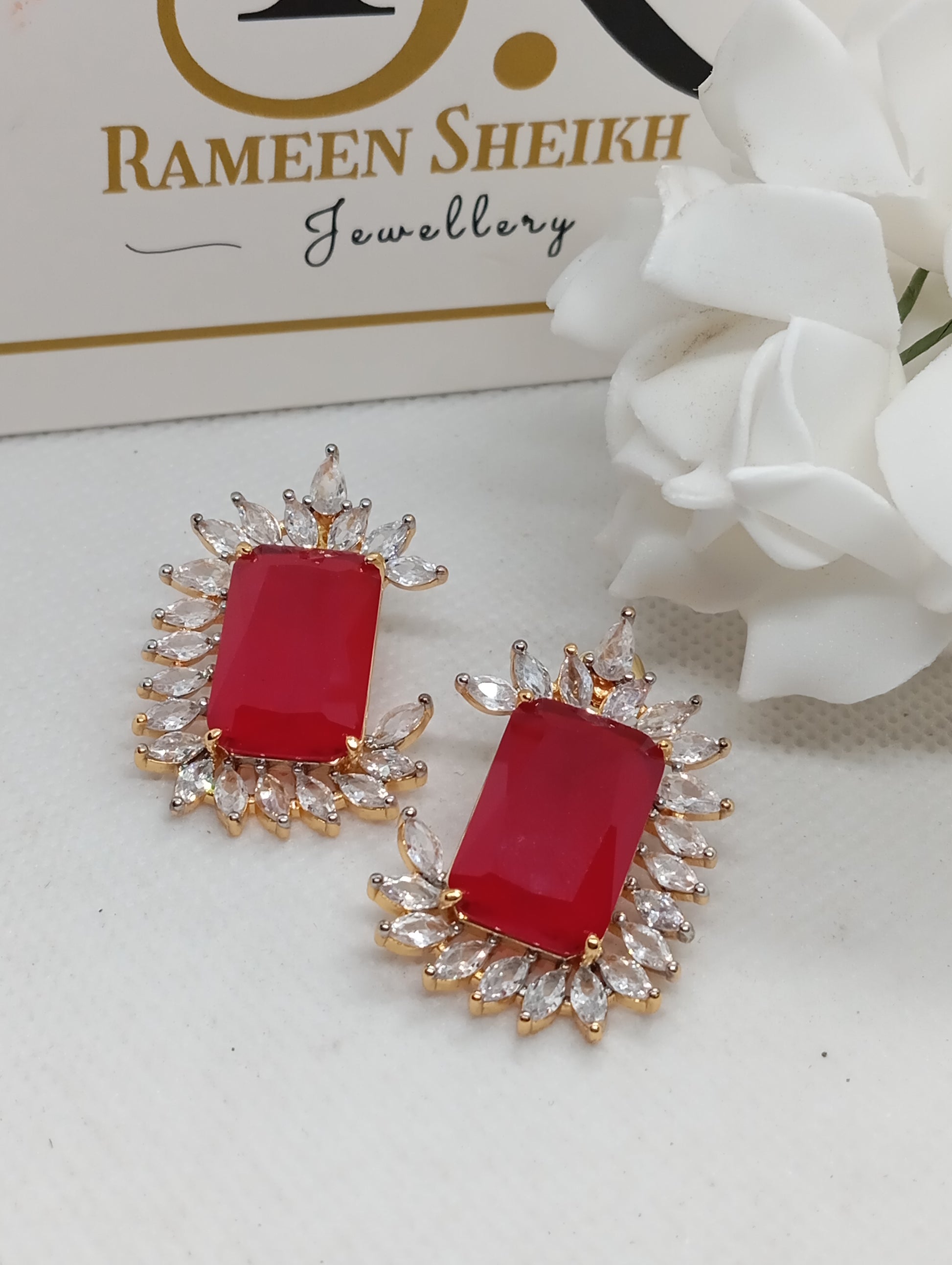 Premium Designer Judao Zircon Earrings | with Stones and 22k Gold Polish | 6 Colors | RE-1183