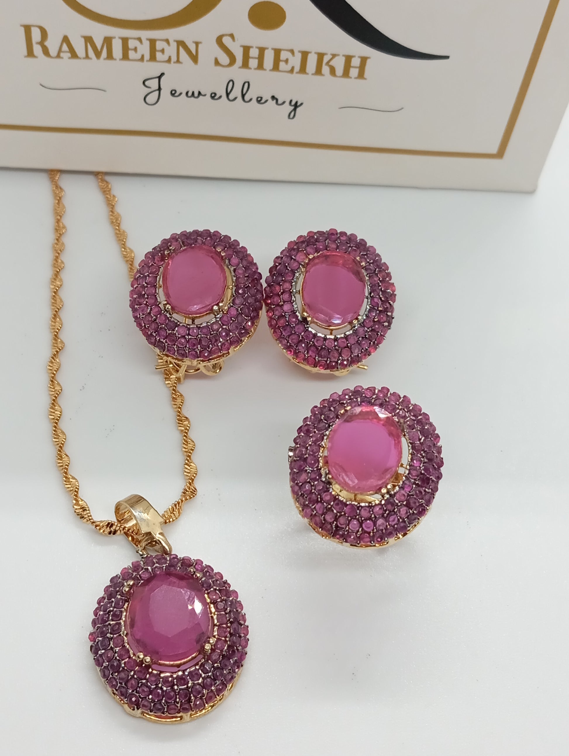 Luxurious | 5 Colors | 22k Gold plated Premium locket set with stones |Hand carved | 606F