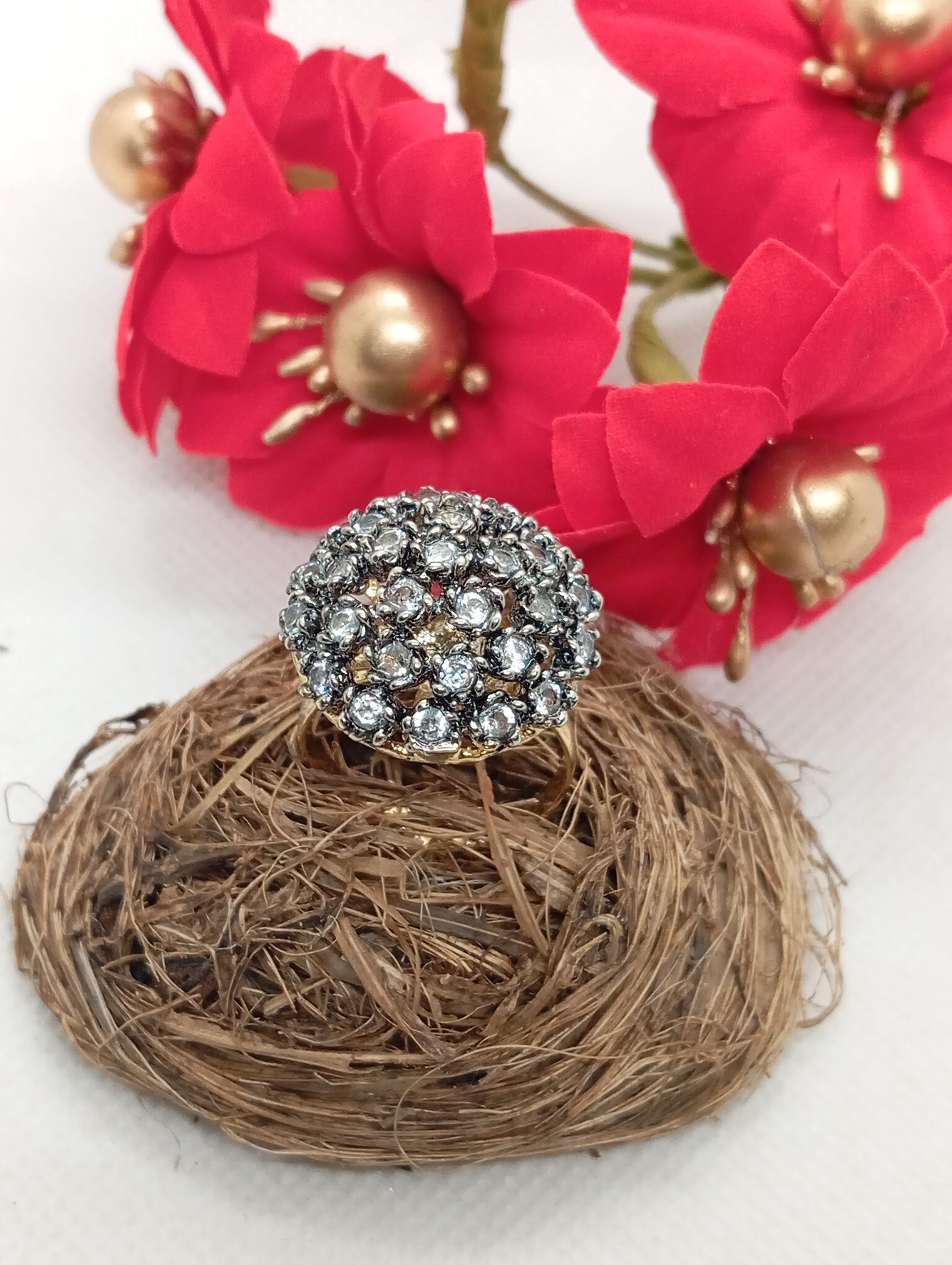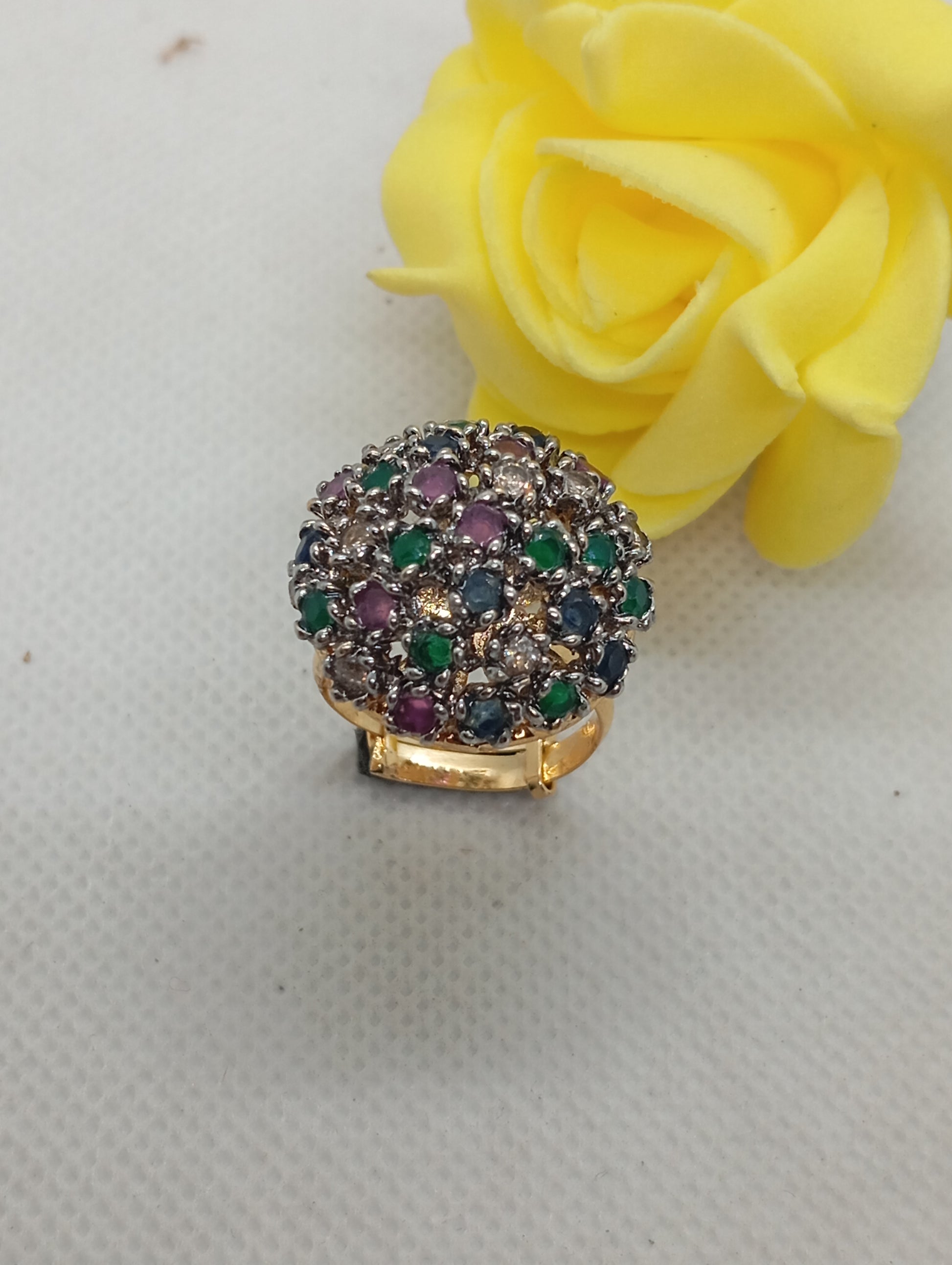 Premium Diamond ๐Ÿ’Ž cut Zircon judao adjustable ring , 22 k gold polish hand crafted | TM-89z