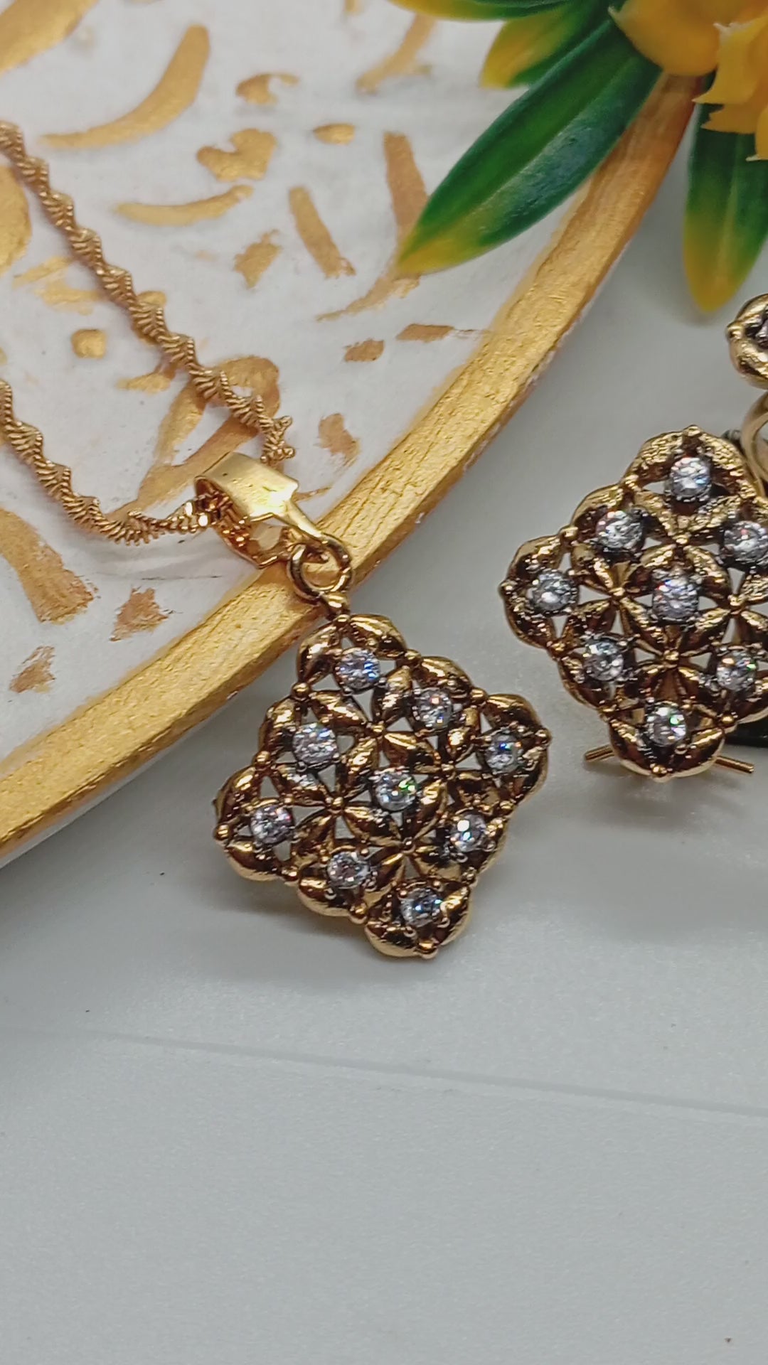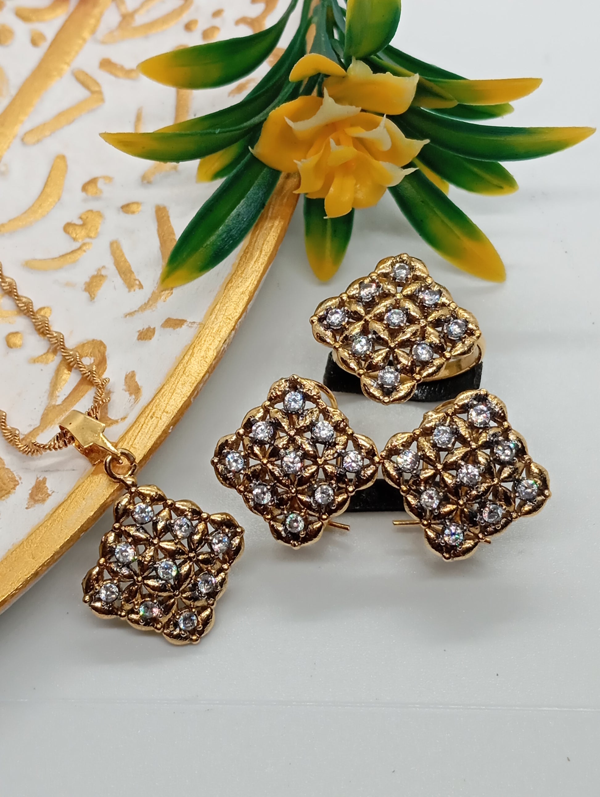 Lavish | Premium Diamond Cut Zircon Locket Set |22K Gold Plated| RS-793