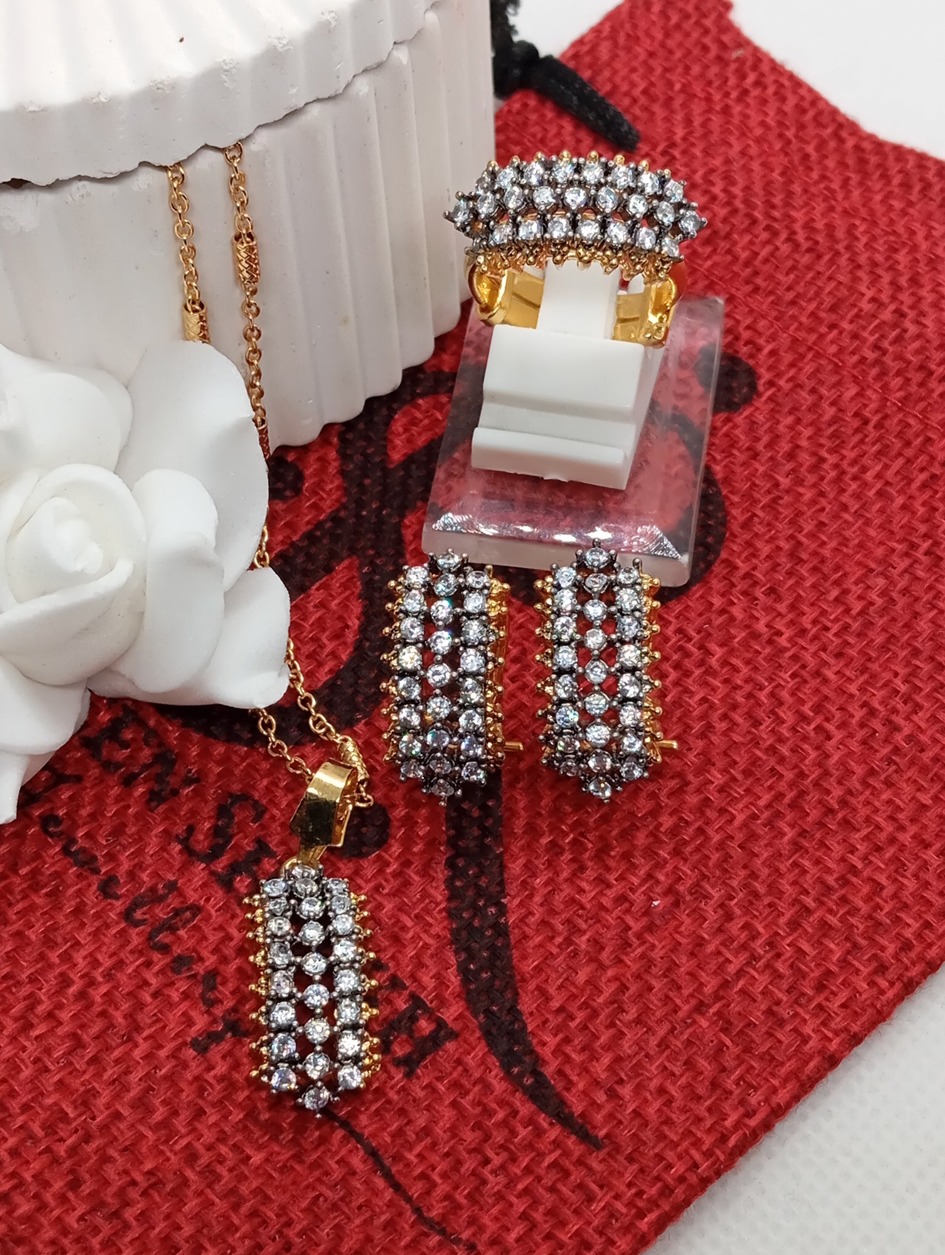 Mesmeriza |Diamond Cut Zircon | Locket Set | 22K Gold Polish Hand Made | RK-109