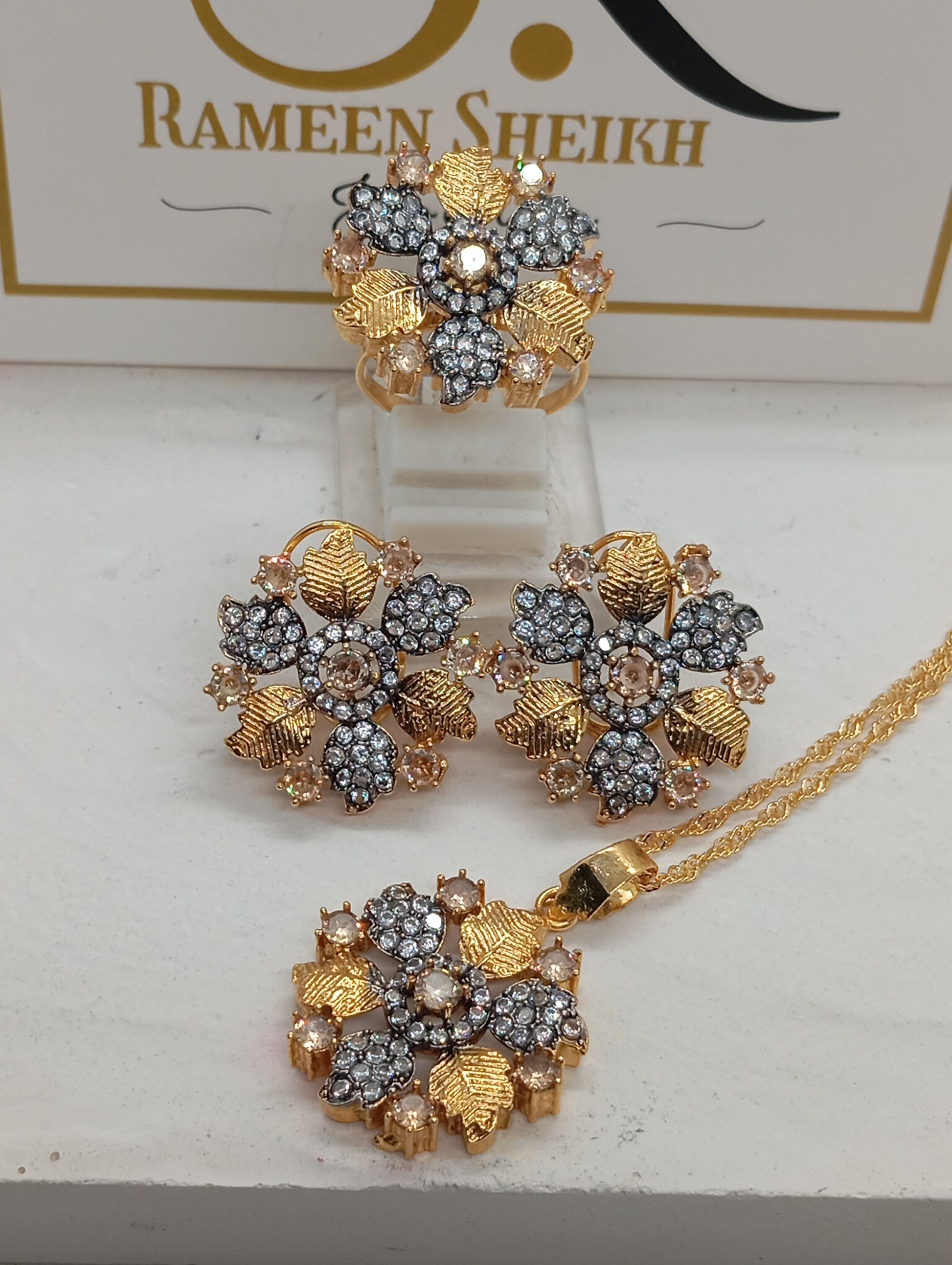 Diamond cut Zircon judao Locket Set | 22 k Gold Plated | 3 Years Warranty | MS-564