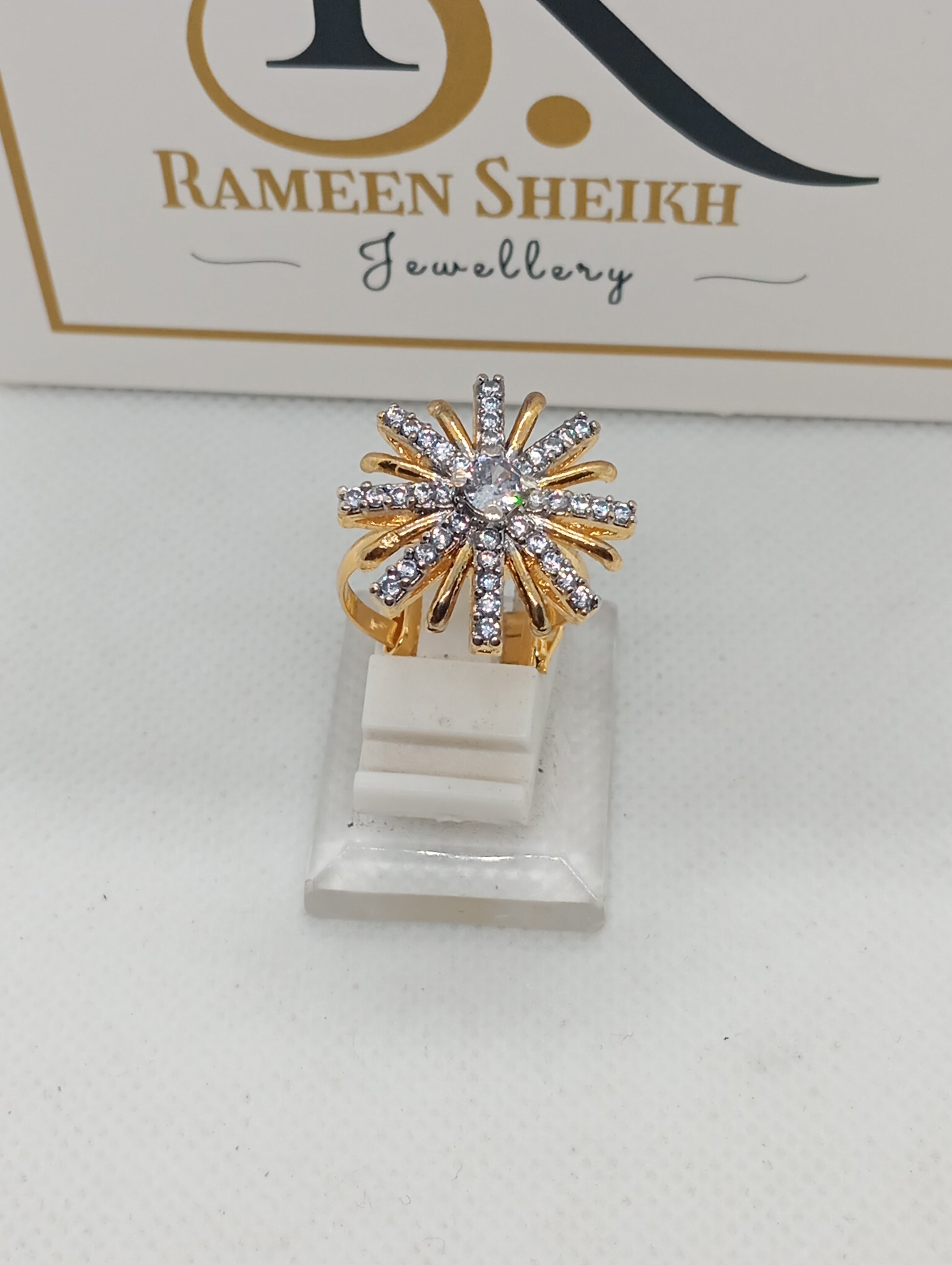 Hand Crafted Diamond Cut Zircon Judao Ring(Adjustable) | 18 K Gold Polish (3 yrs. Warranty) | RR-103