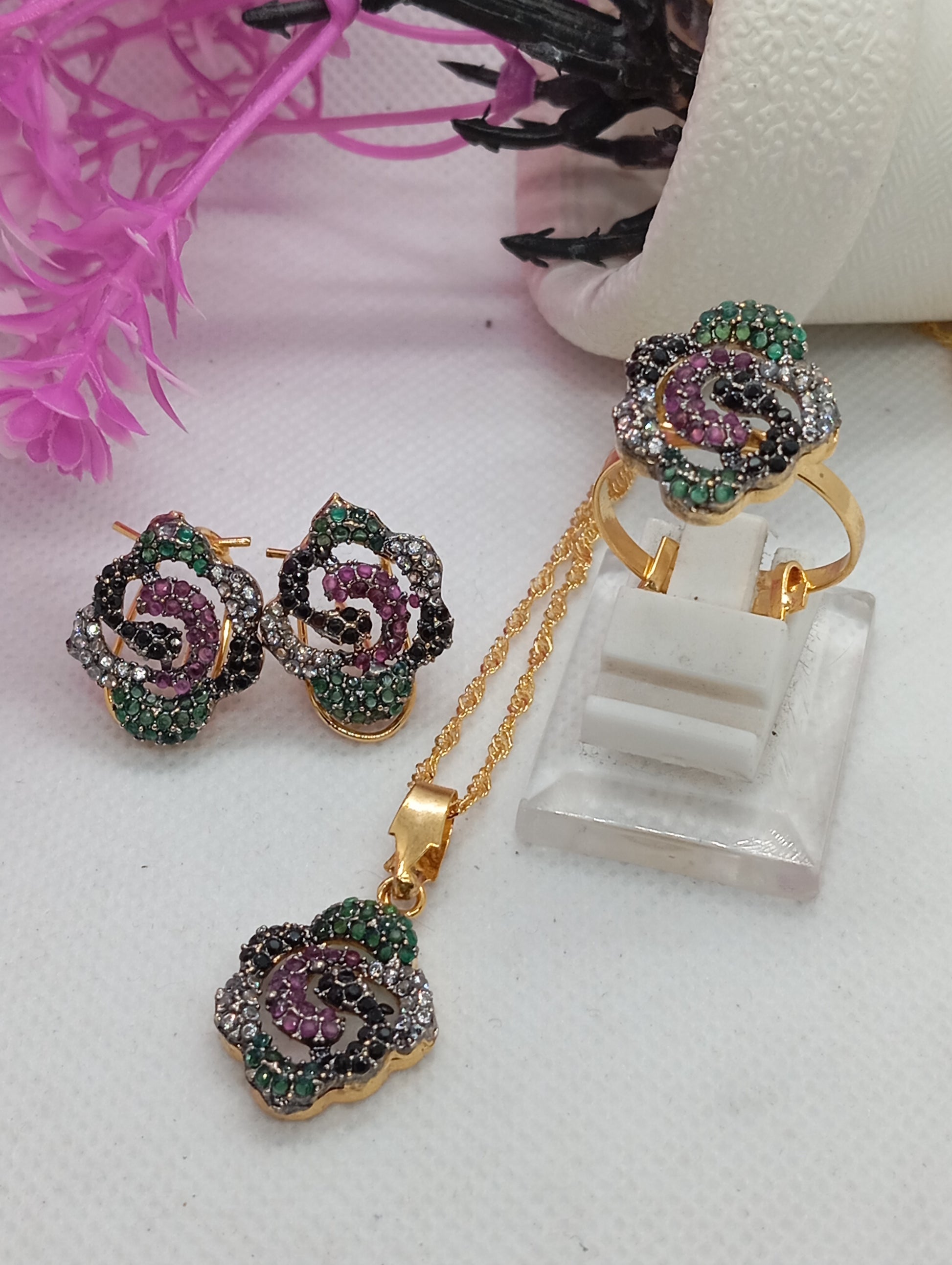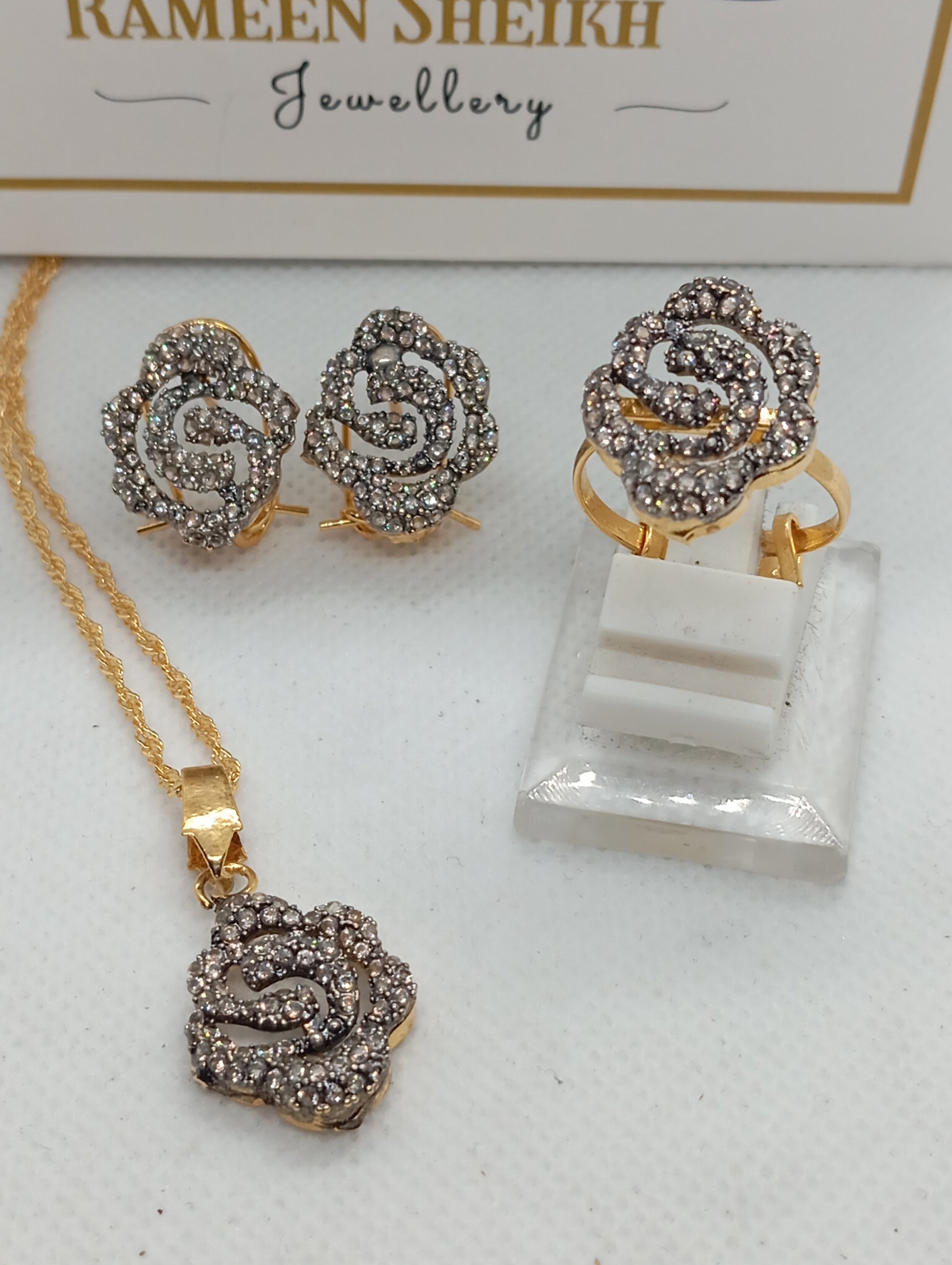 Zebaish | 2 Colors | Locket set in Diamond Cut Zircons | RK-3687